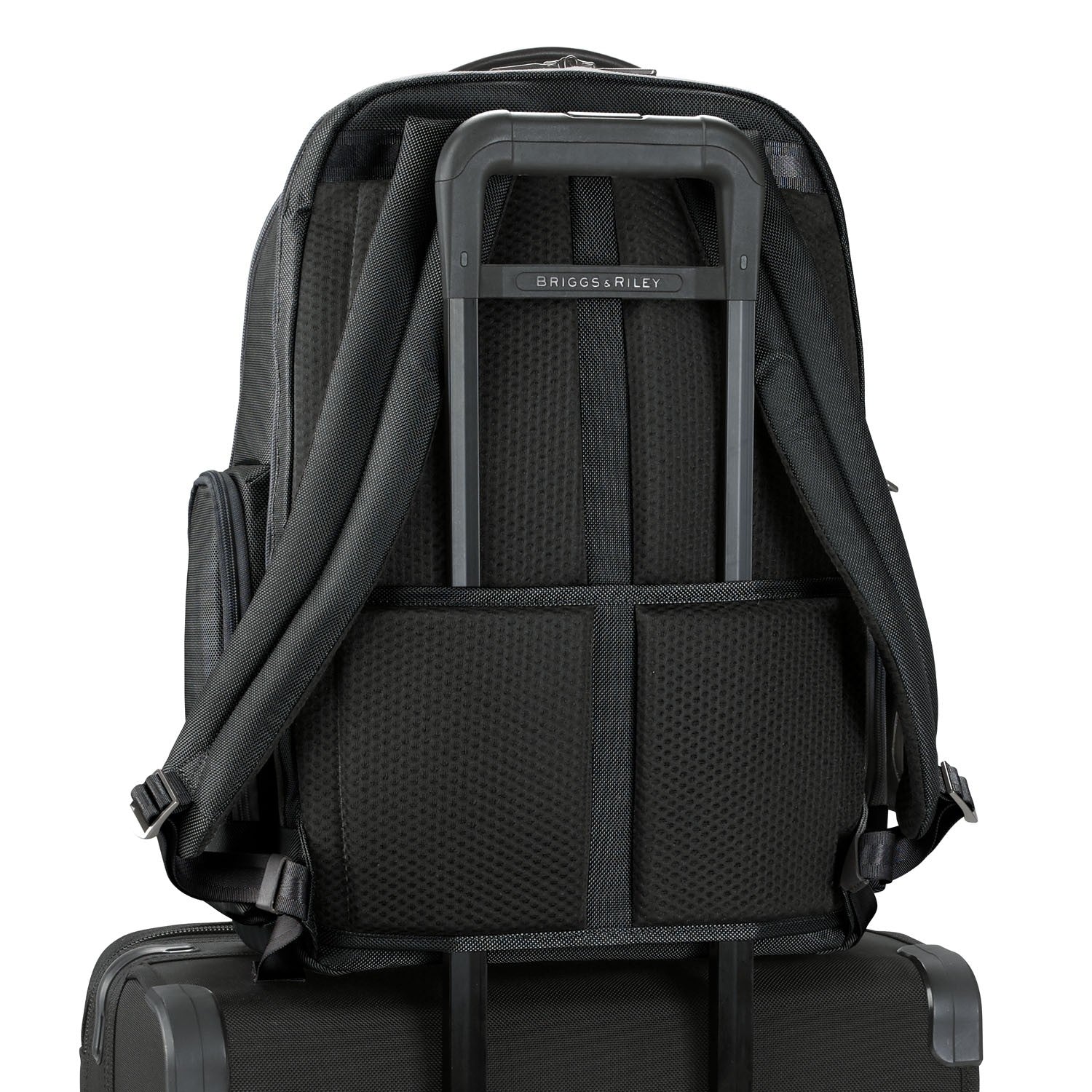 - Slip-through back panel allows bag to slide over any Briggs & Riley Outsider® handle for seamless transportation of two bags as one
