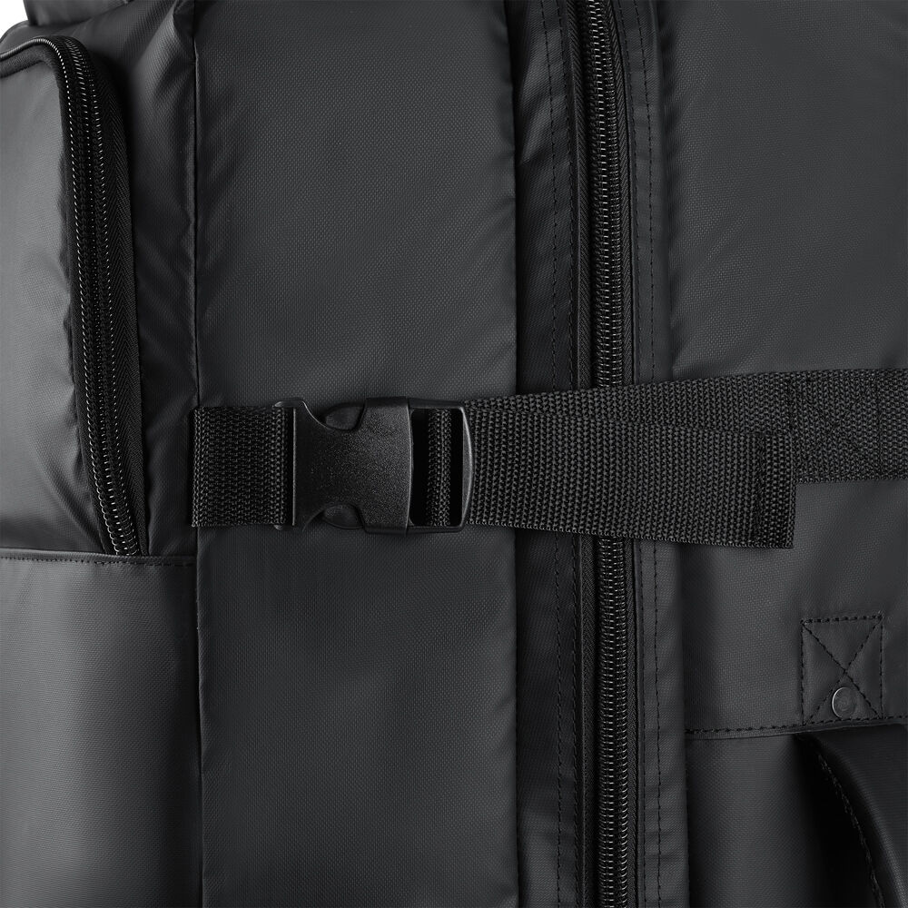 This large-size rolling duffel is perfect for any trip. It includes a 50-50 opening with two equal size compartments for easy organization as well three exterior pockets: two large ones to store shoes, a sweater or return-home laundry and a smaller one that can be used for small accessories and valuables.