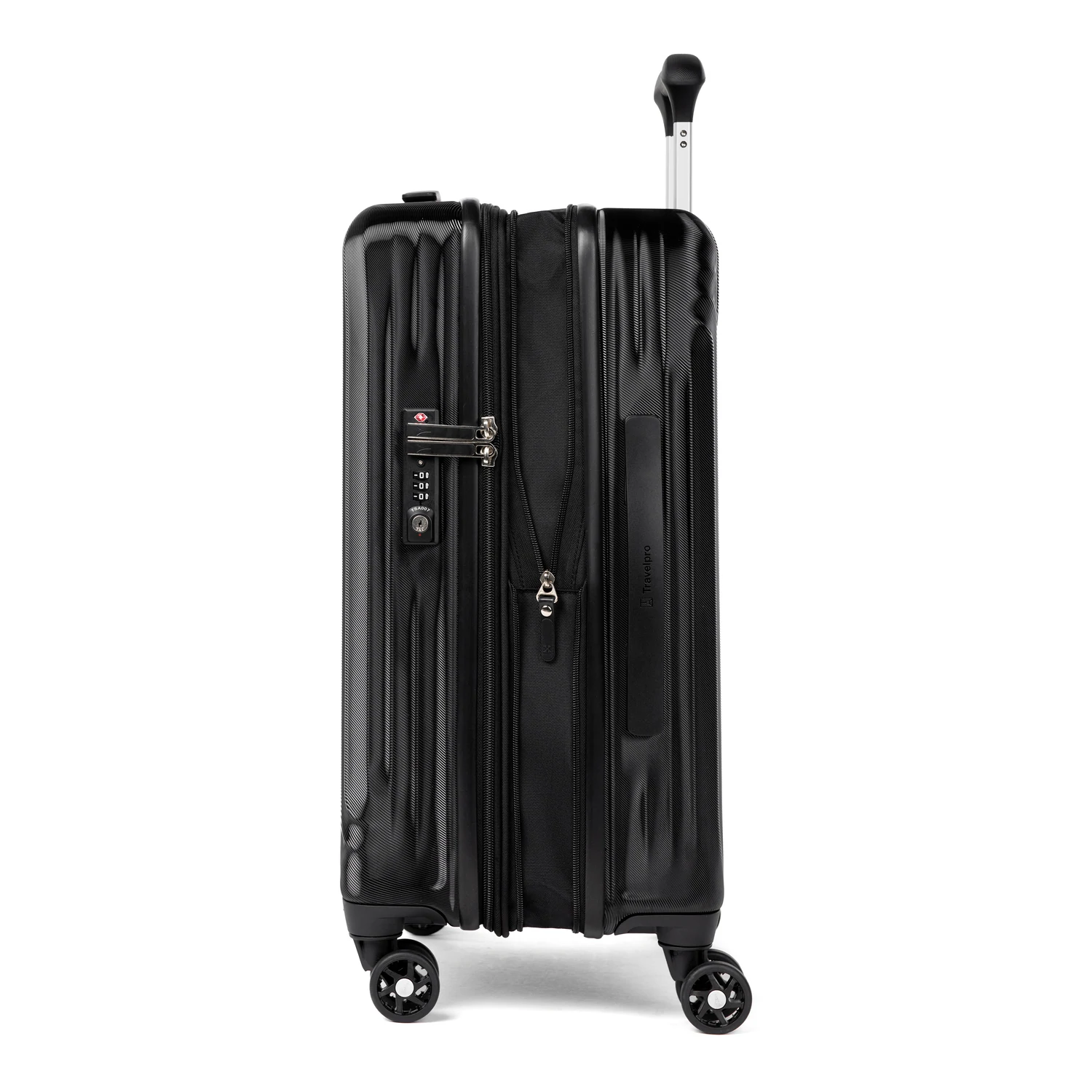 Travel Like A Pro® and glide with ease on eight smooth-gliding spinner wheels that rotate 360° led by a PowerScope Lite handle that locks in two positions (38” and 42.5”) for users of different heights. A patented Contour Grip with rubberized touch points makes maneuvering easy and comfortable. Backed by our Built For a Lifetime Limited Warranty with Trusted Companion Promise that even covers damage caused by airlines or other common carriers for the first year of the lifetime warranty.