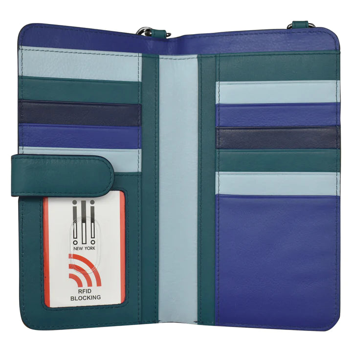 ILI New York RFID Phone Wallet Crossbody - Denim Multi