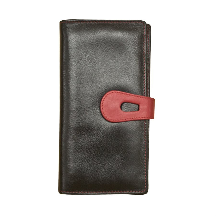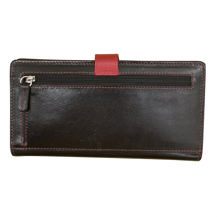 ILI New York Leather RFID Large Clutch Wallet - Black/Red