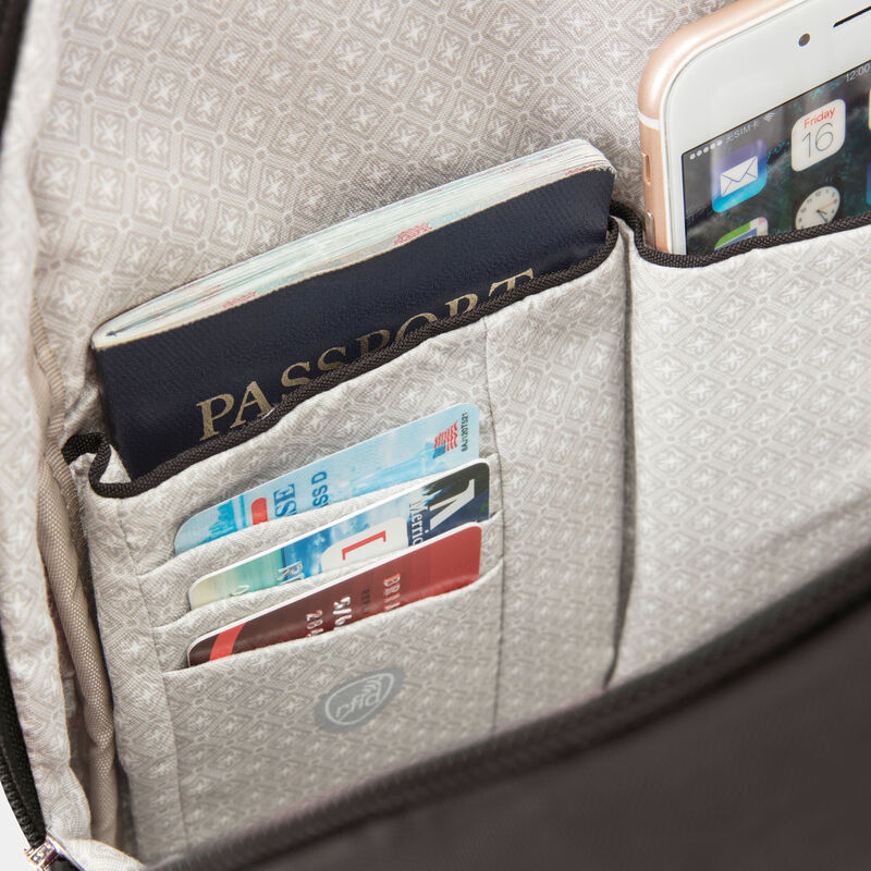 Now you can stop watching your bag and look up to see the world in front of you. Our built-in 5-Point Anti-Theft security system will protect your valuables from pickpockets and thieves. Includes slash-resistant mesh barrier in all 4 sides and bottom body panels; slash-resistant and lock-down strap; locking compartments; and RFID blocking organizer. Travelon packs your bag with peace of mind.
