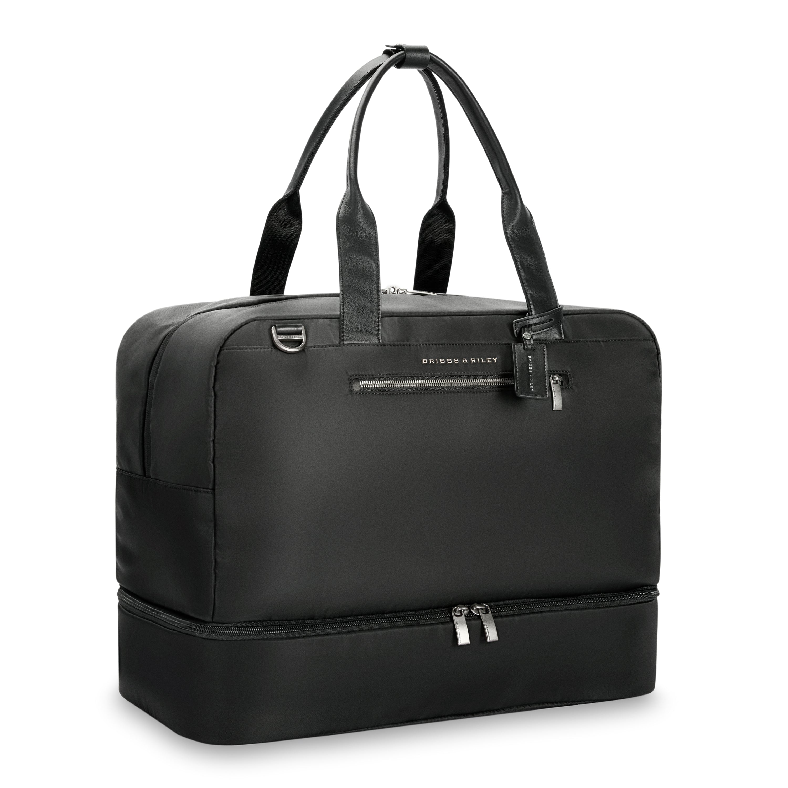 The Rhapsody collection brings elegance to your everyday with soft, lightweight materials, luxurious leather accents, and thoughtful organizational features. Your ideal weekender bag is here-designed with soft leather handles (plus a shoulder strap for versatility), a spacious compartment for your clothes and laptop, and airport-friendly features like a SpeedThru™ pocket and a slip-through back panel to slide over luggage handle. Protected by Briggs & Riley's Simple as that® lifetime guarantee.