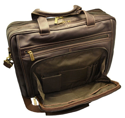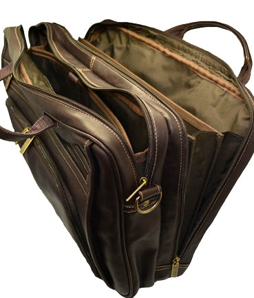 DayTrekr Expandable Leather Briefcase - Brown