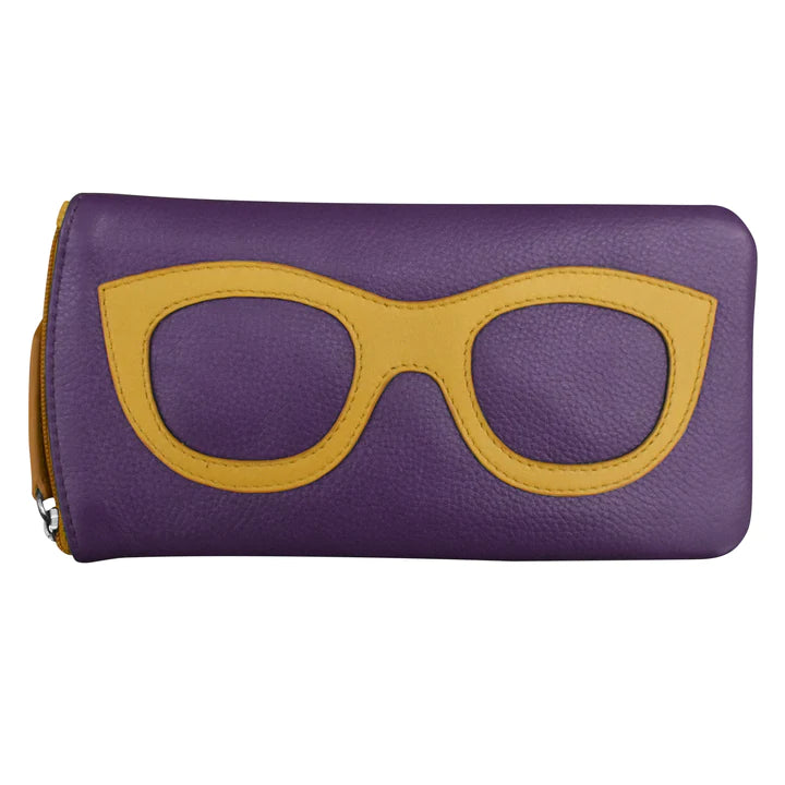 ILI New York Leather Eyeglass Case - Purple/Yellow