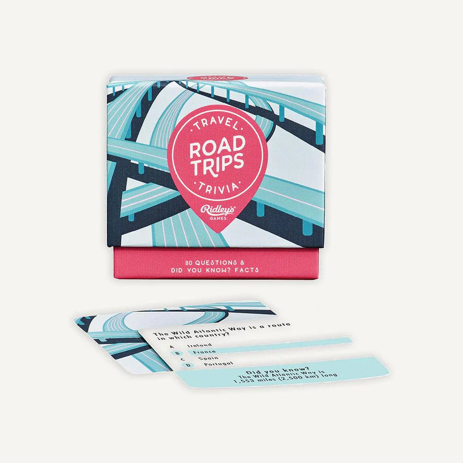Buckle up and get ready for the great open road with this Road Trip Trivia from Ridley's Games! Travel the world's greatest journeys and make sure you're in pole position for this quiz that has 80 questions featuring multiple choice game play and a bonus fact! Answer questions like 'Where can you stand on the Devil's Kitchen cliffside observation platform?' Packaged in a small branded box, this portable trivia is the perfect gift for the travel lover in your life.